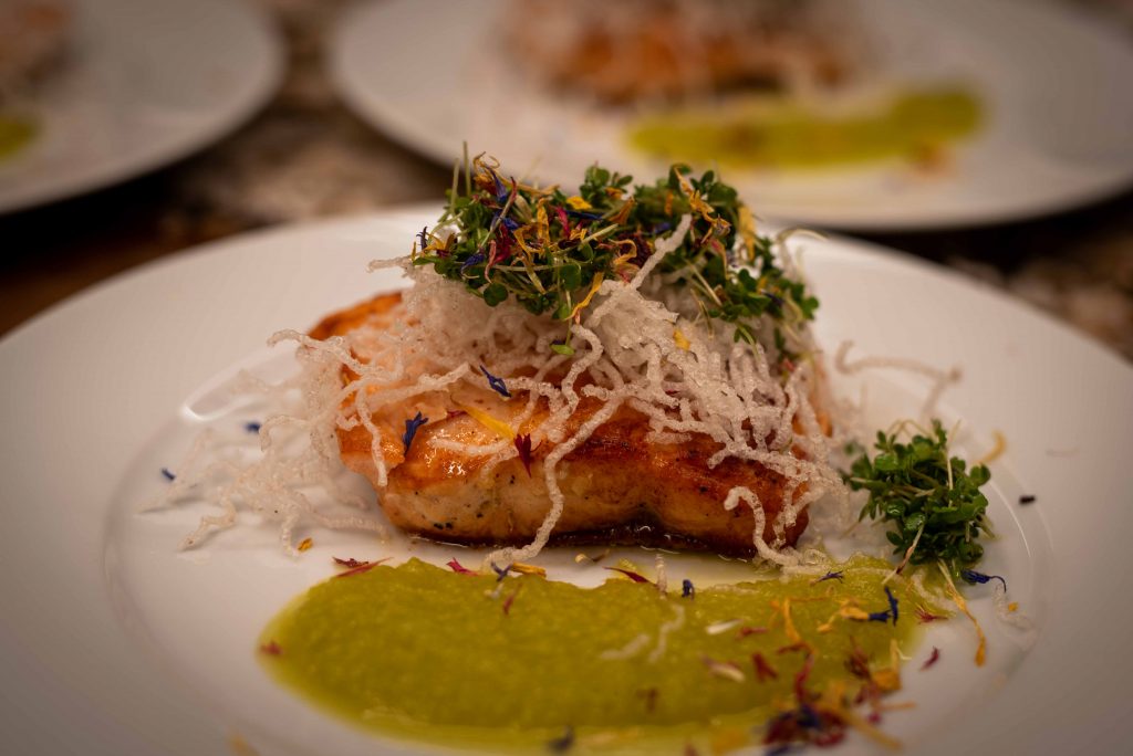 Forelle an Wirsing-Aprikose und Kartoffelgratin